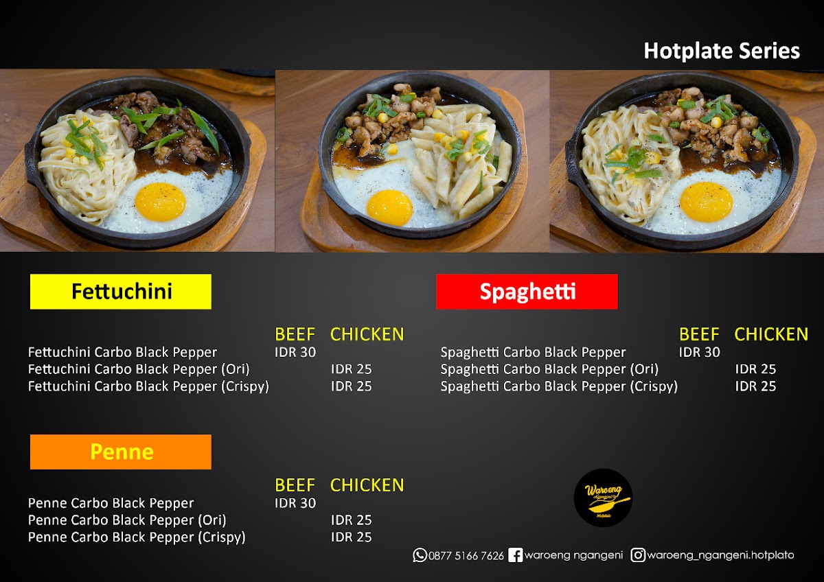 Welcome to Waroeng Ngangeni, a culinary gem nestled in Karawang, Jawa Barat, where delightful flavors meet affordability. This charming restaurant, located on Jl. Raya Telagasari, specializes in a diverse menu that ranges from their signature Pasta Hotplate Series to mouthwatering Nasi Goreng and Kwetiau dishes.